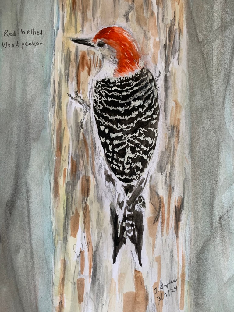 Through my walks, I enjoy seeing familiar birds and meeting new ones. It’s in my head, but I like to think that certain robins appear to guide me to the new birds in my path, or that a certain Red-tailed Hawk keeps watch over me while I sleep. I often ascribe to them qualities associated with fairytales or folklore. The birds are my guides, sentries, and oracles.