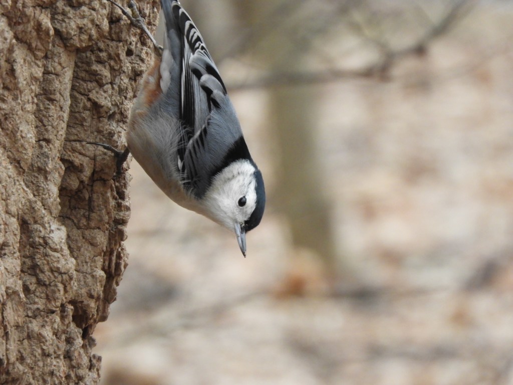 Their arrival in the fall did mark the expected change of seasons, as precarious as seasonal change goes these days in an age of overall climate anxiety. With tweets, squeaks, and chirps, they announce their presence in the hush of winter. The chickadees, juncos, and titmice are often seen in one another’s company. White-breasted Nuthatches may often be near, too, exploring the tree trunks in vertical directions, often lifting their heads to calculate their next lateral move.