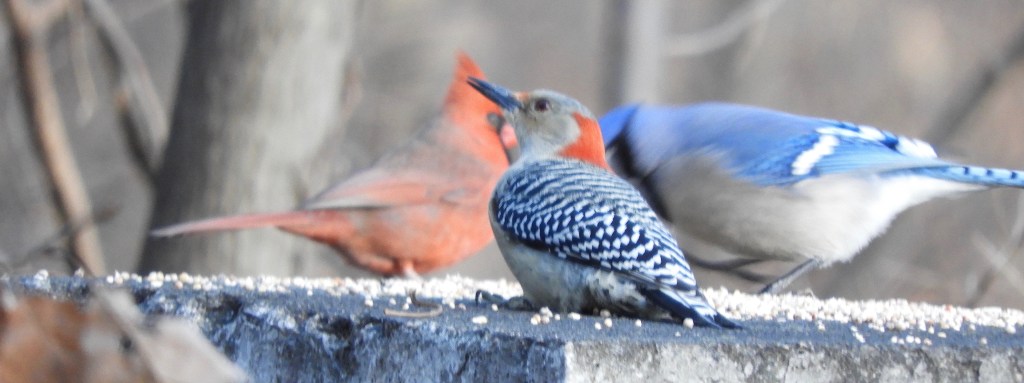 Naturally, an old growth forest would attract these birds, for they go pecking at the tree bark for insects, acorns, nuts, and seeds. I know one friend who regularly feeds peanuts to the squirrels in the park, and a Red-bellied Woodpecker usually shows up.