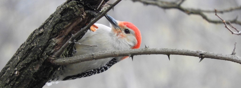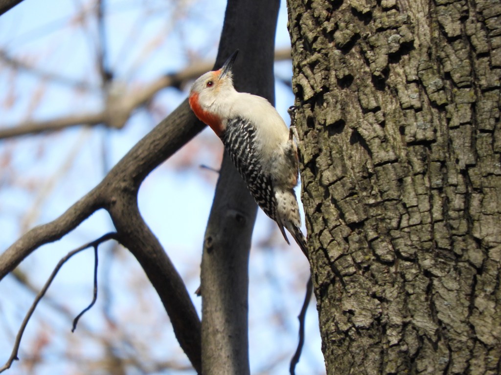 Most of the woodpeckers make loud sounds when banging their beaks on the trees, and sometimes the effect is quite loud. Their noise is amplified in the forest, especially the section adjacent to the athletic fields near the Salt Marsh.