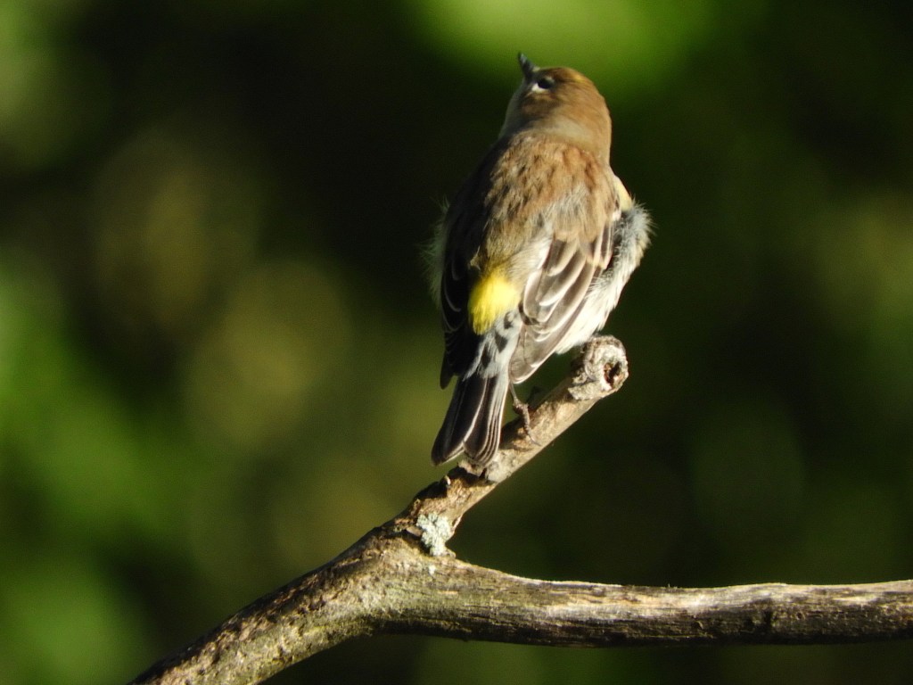 With their high tinny chirp, Yellow-rumped Warblers are often heard rather than seen. They are swift fliers, making them hard to discern in the top canopy of the old-growth forest. Walking through the forest, I can hear them over there, and then here, and up there, but I often have a hard time actually seeing one up close. It’s as if bands of Yellow-rumped Warblers are moving around the forest behind some science fiction cloaking device.