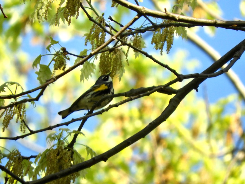 Capturing good pictures of warblers of all sorts can easily turn into frustration. They are often too high up in the tree, leading to the all-too-human phenomenon known as “warbler’s neck.” Once a warbler is in sight, they will cunningly move behind a tree branch. They do not owe birders anything.