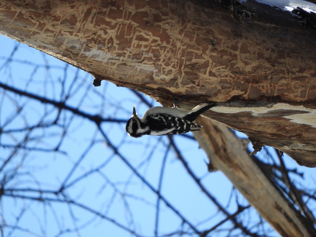 The woodpeckers are good at staying warm all winter, flying into existing tree cavities and by eating insect larvae. They will bore new holes on rotting trees and make new cavities for overnight camping.