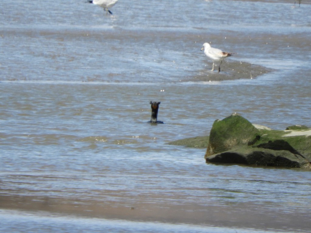 Their double crest is often hard to see but on a recent afternoon, as I followed a pair flying into the main Salt Marsh, I was able to detect the tufts on one of them. It had emerged from fishing among the many gulls also present.