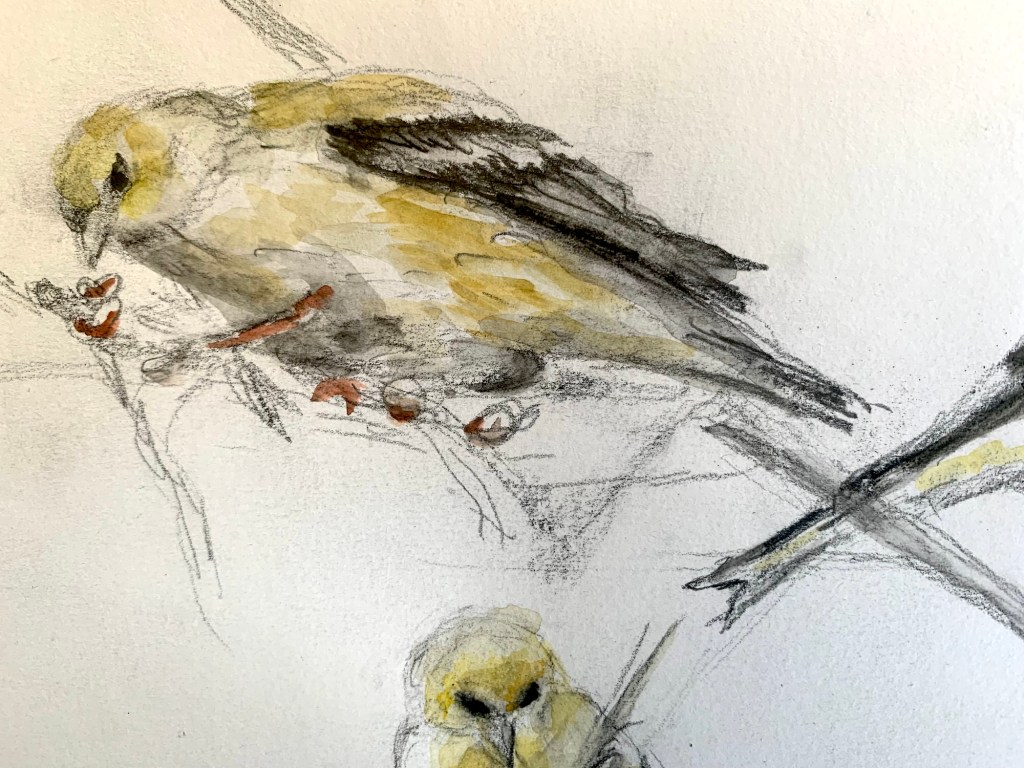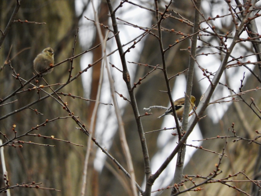 This early in the spring migration season, the goldfinches are still a pale yellow. Their characteristic bright yellow will deepen with a molting process, but their gathering now brightens the late winter landscape. I’ve seen American Goldfinches in this same spot, but I do not recall seeing them this early. Finches are little birds and can be easily overlooked.