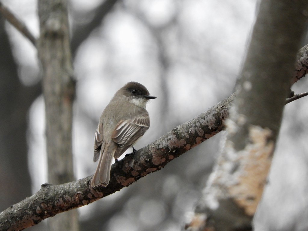 Throughout the fog and mist, I’ve come upon Chipping Sparrows, Eastern Phoebes, kinglets, a Pine Warbler, Brown Creepers, Brown-headed Cowbirds, Hermit Thrushes, and a Yellow-bellied Sapsucker, among others. The strange company of Cedar Waxwings spent over a week in the trees at the edge of Muscota Marsh.