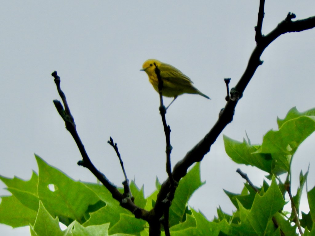The sight of a Yellow Warbler can bring a rare thrill during spring migration season here. Cute by any definition, their cheerful color can brighten even the grayest of days. In Inwood, I most often spot one in a tree bordering the Salt Marsh, though I will hear their song high in the forest. I don’t see them often.