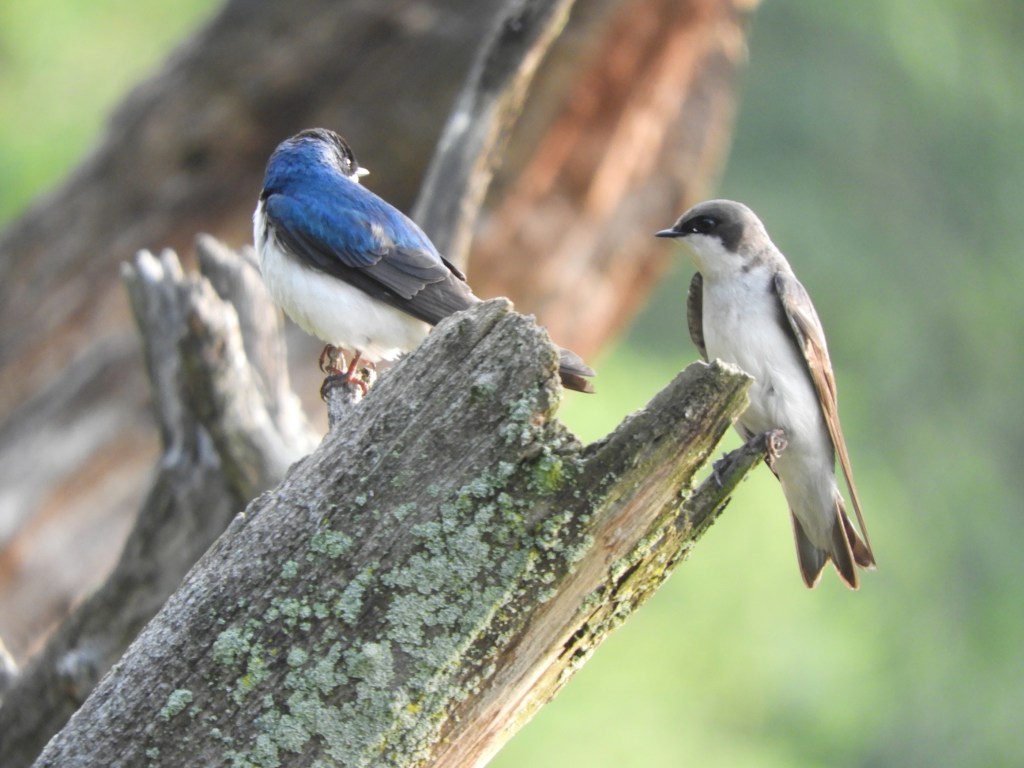 The male and female birds were engaged in a lively interaction. This sequence of three images, taken on June 8, 2025 at 6:36 a.m. fall within the same second. Two minutes later, the Tree Swallows had moved on to a new hollow.