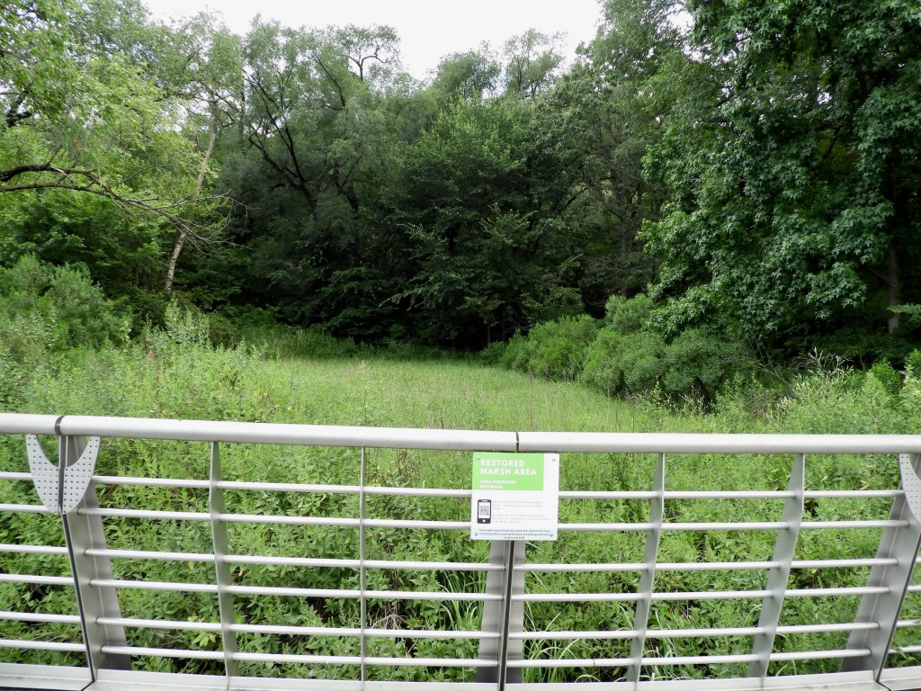 Image: Bird watching interpretive sign in Sherman Creek Park. Accessing the code provides a guide to birds in the ecosystem.