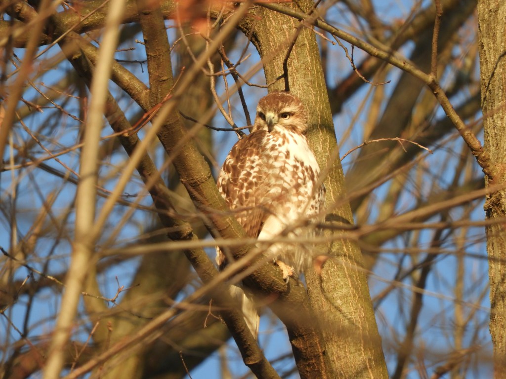I’ve hesitated a few times this snowy and cold month to wander down the street and up into the forest. Yet, I have sufficient outdoor clothing gear and stamina to withstand a few forays into the places where hawks hunt and the tree burrows where the owls live. I have spotted the hawks and at least one Bald Eagle. The woodpeckers have been efficient in retrieving food sources in the trees.