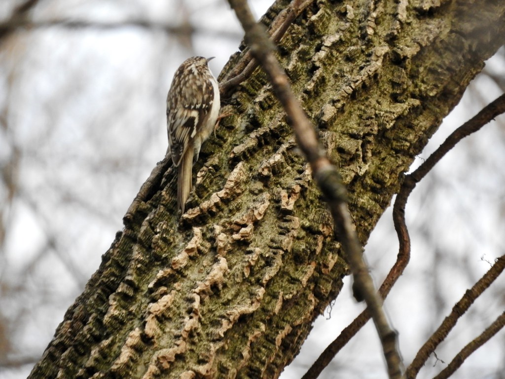 Moving on, I recently saw a White-breasted Nuthatch and a Brown Creeper on adjacent trees. While the nuthatch crawled from top to bottom on its tree, the Brown Creeper was moving in the opposite direction. I’ve seen a Winter Wren down by the upper entrance to the Clove, and several Palm Warblers.