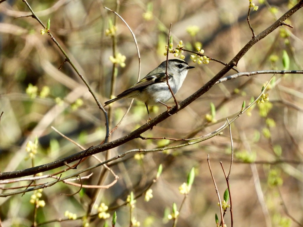 Kinglets are considered medium or short-distance migrants here in the East, spending their breeding season in Canada and northern states and flying short distances south during the winter. They spend most of their time in the forest canopy looking for insects, but here in the parks, I’ve spotted both kinds at lower elevations near the marsh.