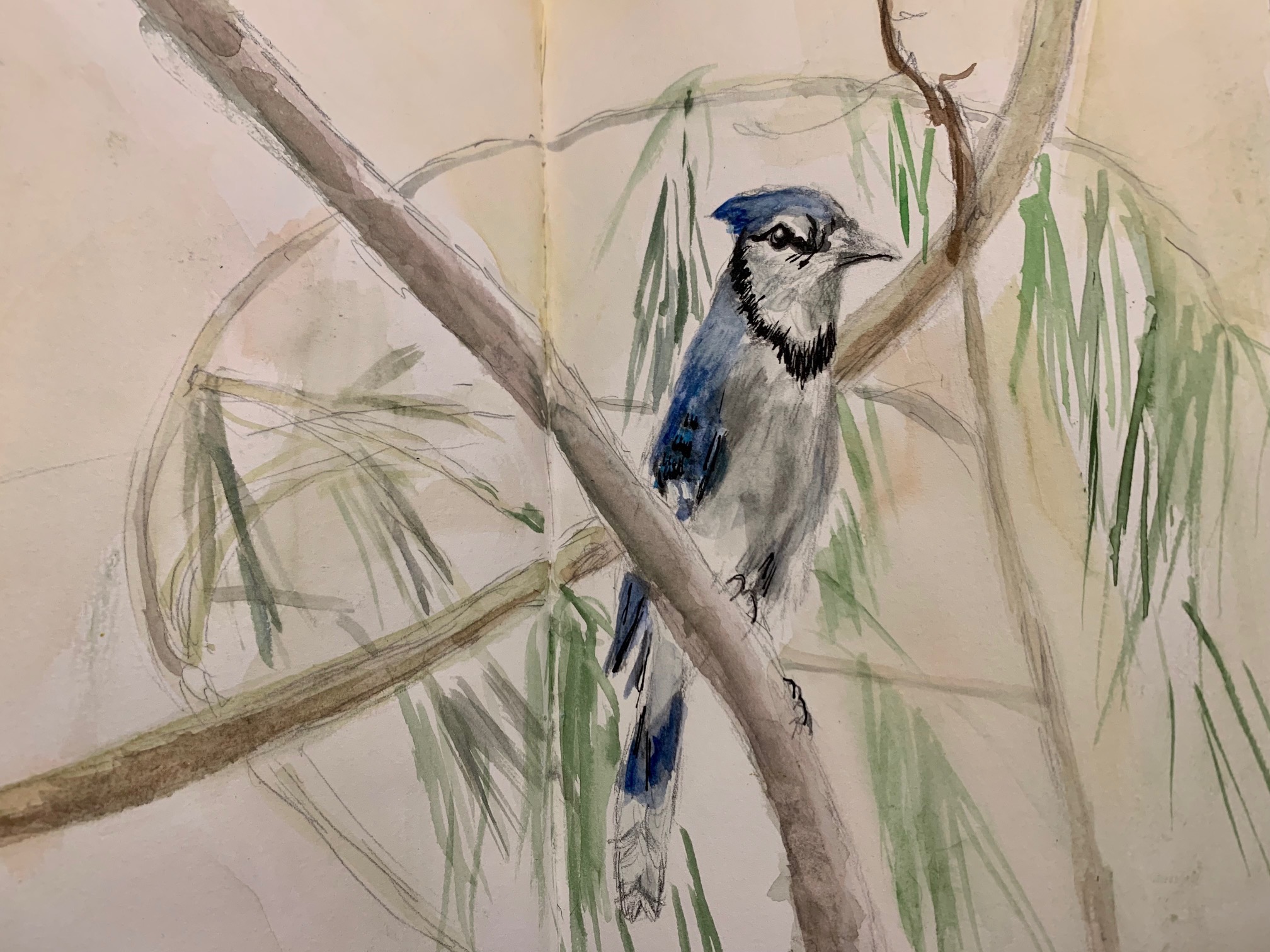 Canson mixed-media sketchbook. Water-soluble graphite, watercolor, gouache. Finished April 7, 2025.