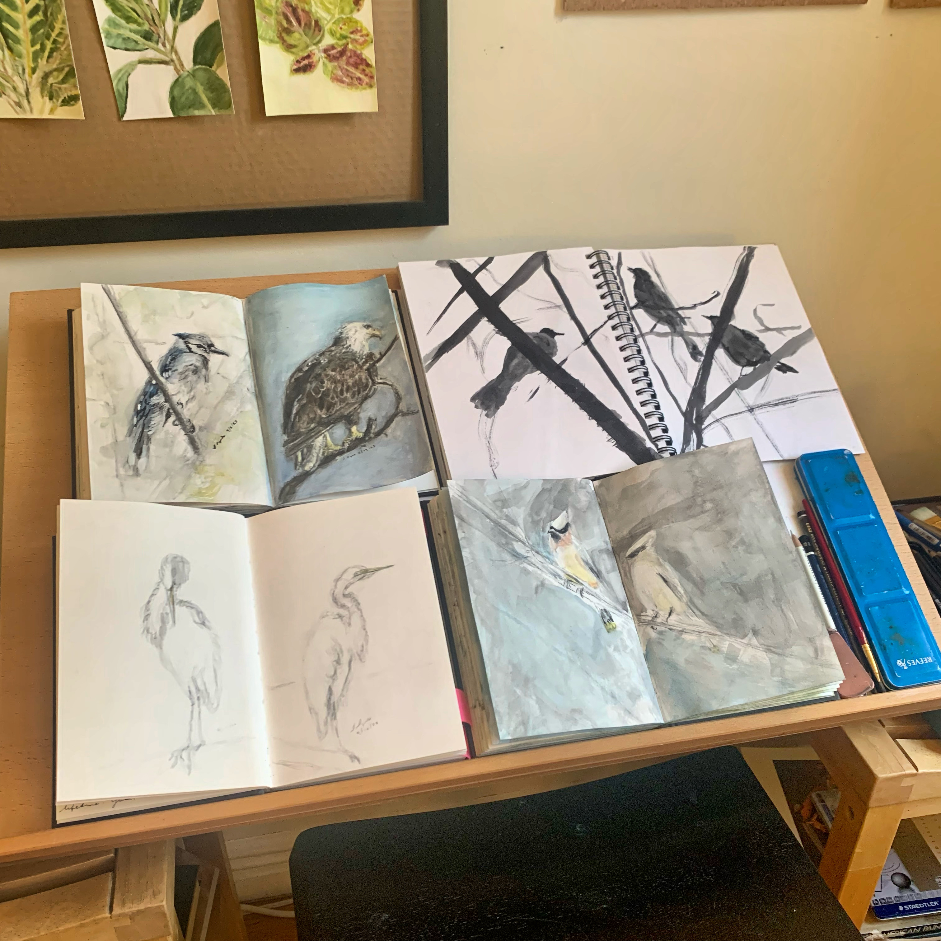 Painting birds at home gives me time to understand the form, structure, and colors of the birds. I gain a deeper understanding of both their species and individuality.