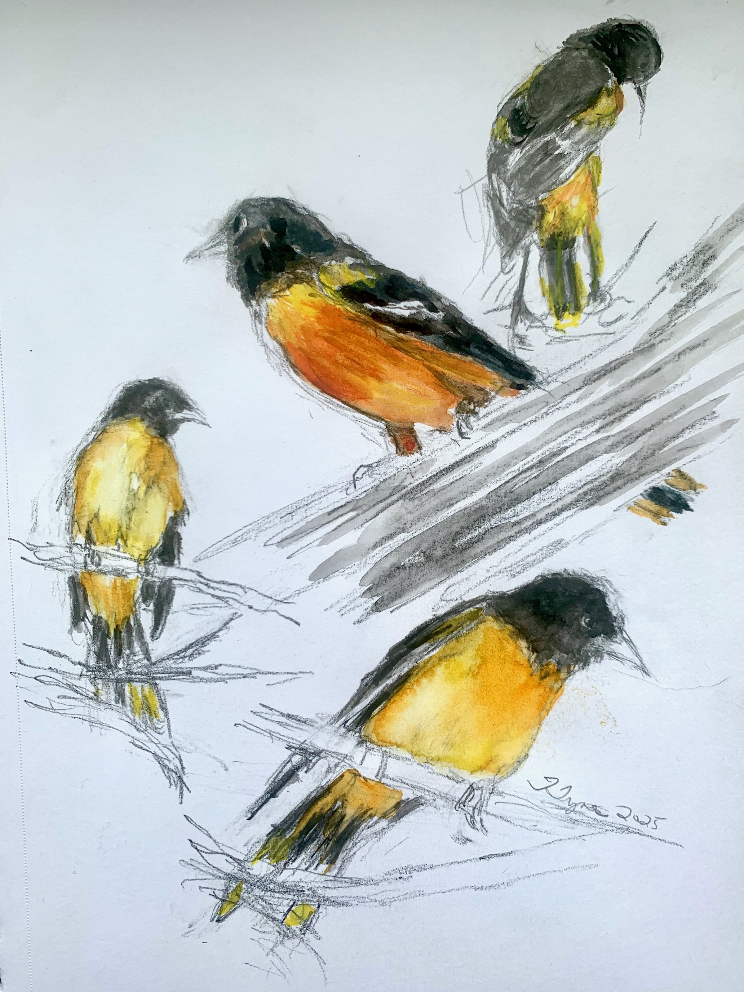 This page groups my sketchbook illustrations of the birds of Inwood by park habitat or by types of birds. Most works are mixed media – water-soluble graphite, watercolor, gouache, pen, or some combination. The source material derives from my original photographs. – Teri