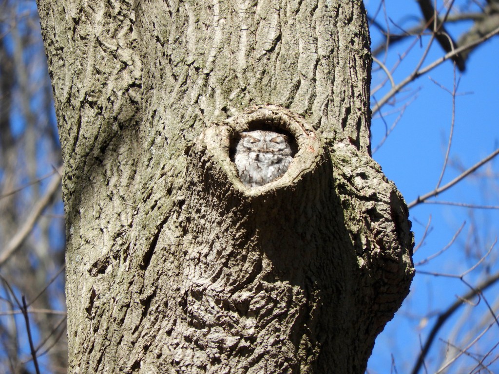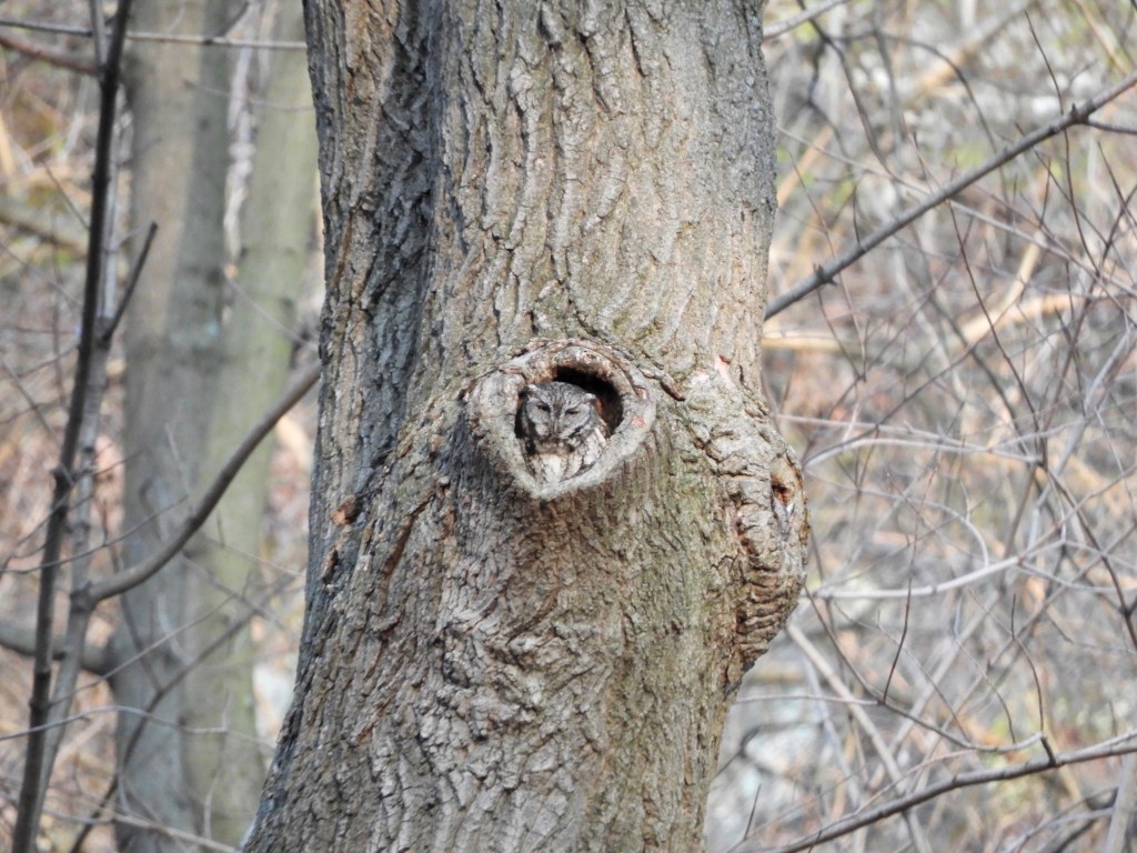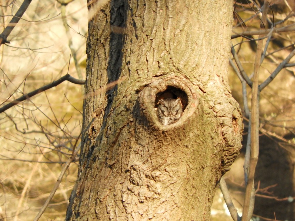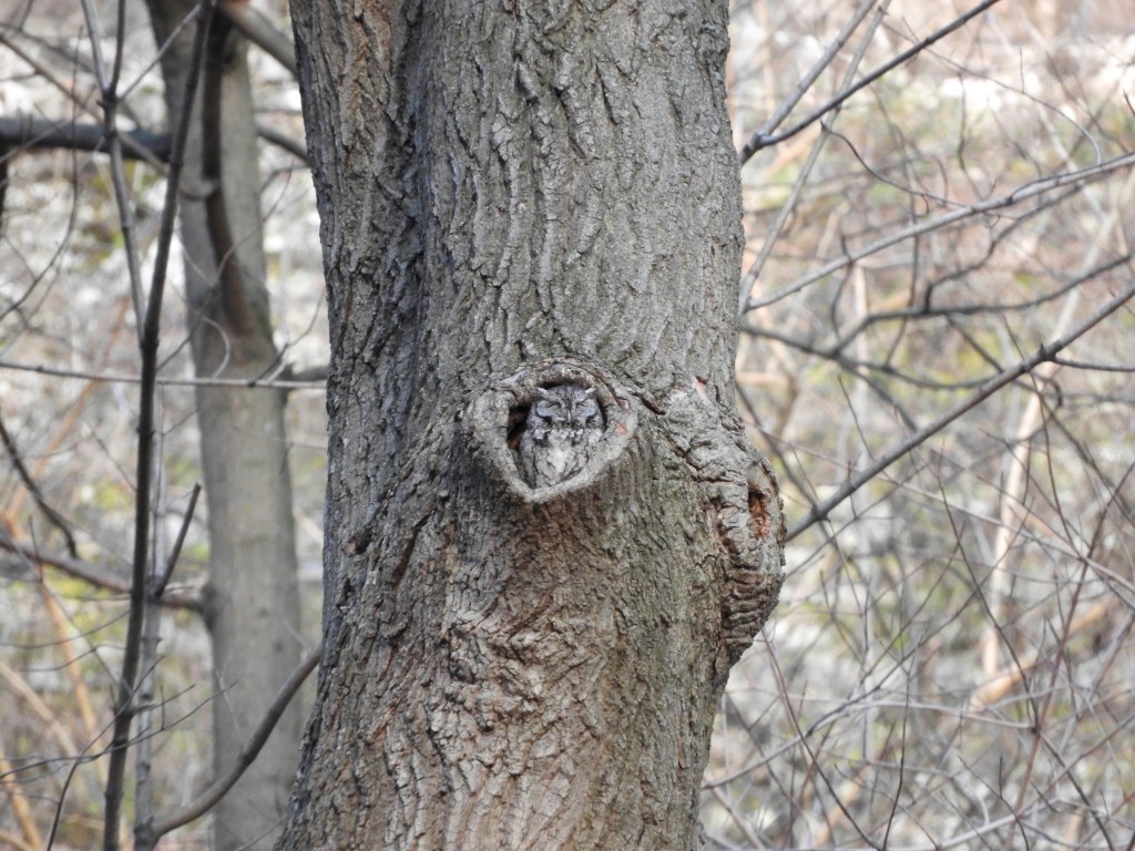 Some excitement with the continuing Eastern Screech-Owl in the park – TWO Eastern Screech-Owls were observed in the same tree on March 14, 2024 by others via chat group and in social media. I took several pictures on the morning of March 14, 2024 and reviewed the images after these other reports.