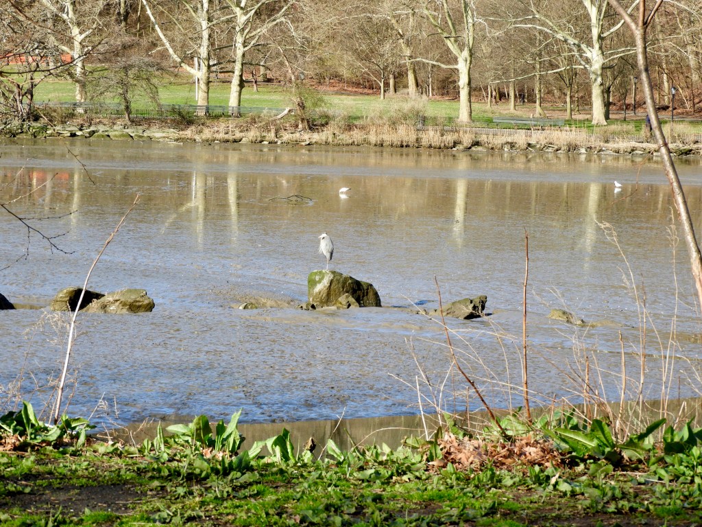 On the morning of March 17, 2024, following days of warm spring weather, the Great Egret was back at the Salt Marsh in Inwood Hill Park.