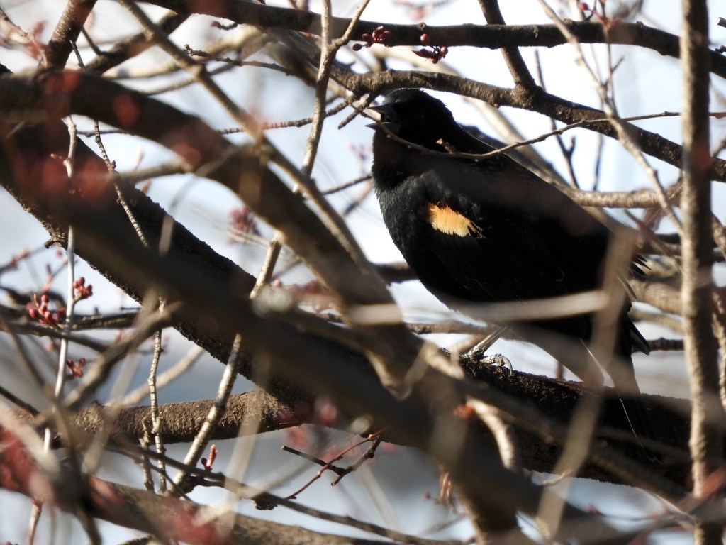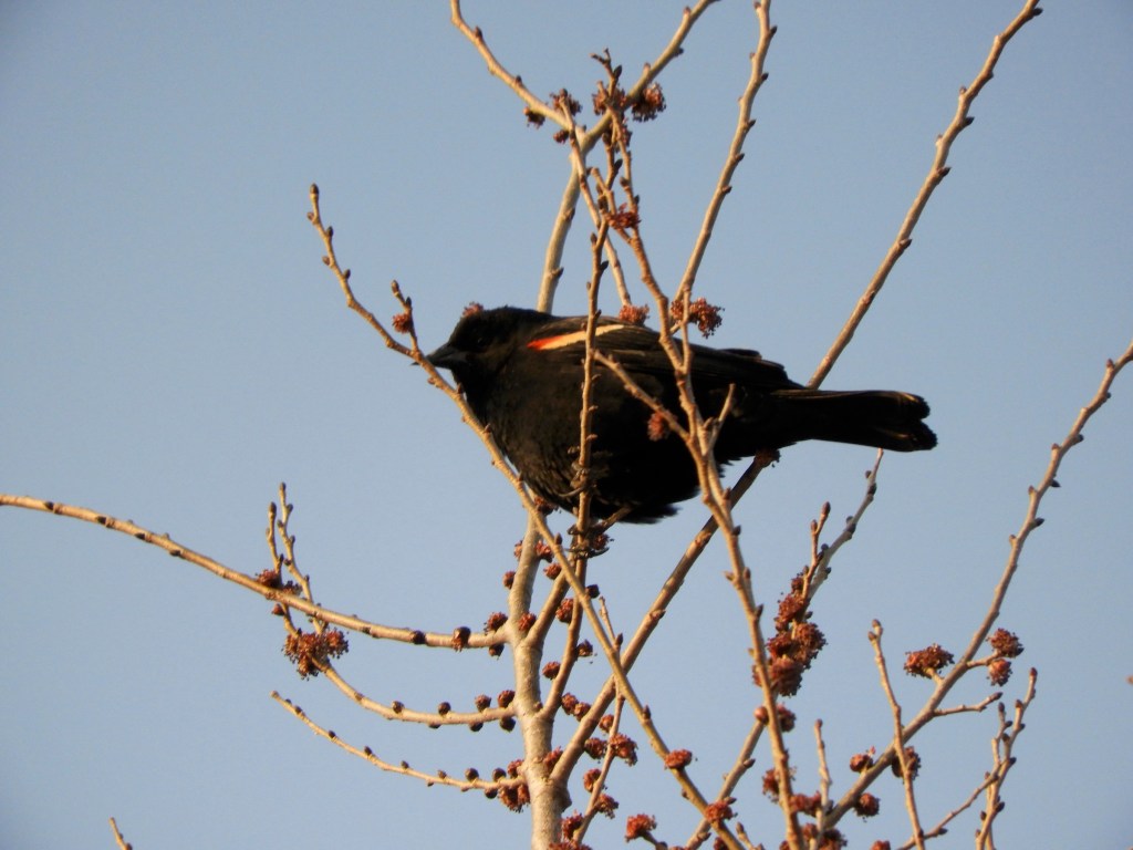 On March 10, the first day of Daylight Saving Time, a Red-winged Blackbird was observed in the fenced Salt Marsh area. See related post.