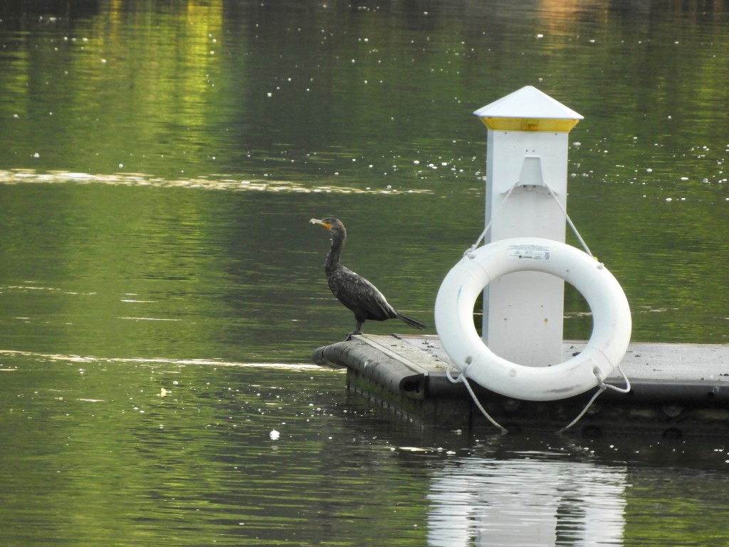 Cover: A Double-crested Cormorant assumes the pose on the dock of Muscota Marsh. August 2, 2024. 6:47 a.m. In the midst of a heat wave, the cormorant is drying off and cooling its feathers in the early morning hours.