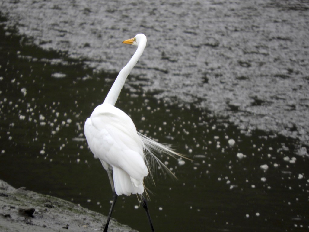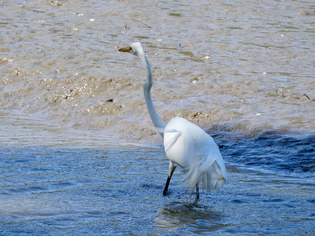Cover: A Great Egret forages for food in low tide at the Salt Marsh, Inwood Hill Park. July 1, 2024. 10:04 a.m.