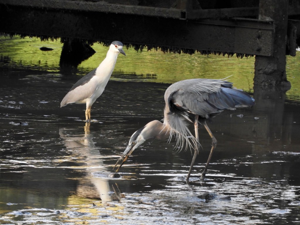 In July, activity in the marshes pick up with frequent sightings of Great Egrets, Great Blue Herons, Black-crowned Night Herons, several types of gulls, and waterfowl. Juveniles are present as well.