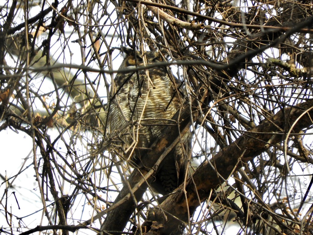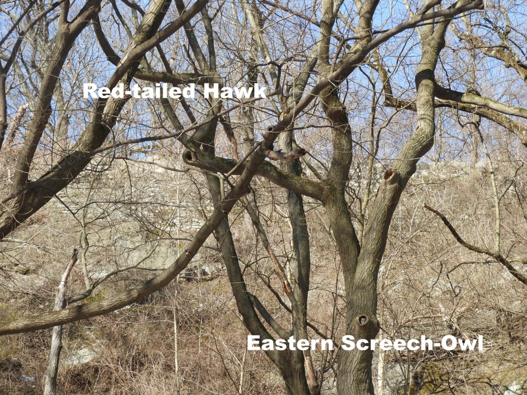 On February 8 and 9, the Eastern Screech-Owl was observed in its crevice home in the Clove. Read more about this owl. On the morning of February 12, a Great Horned Owl was seen in a thicket above the Clove. This owl was last observed by me in the same location in the spring of 2022.