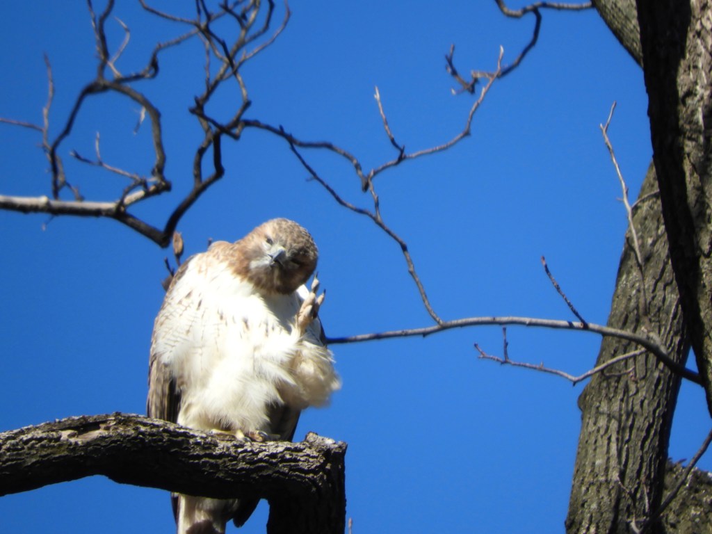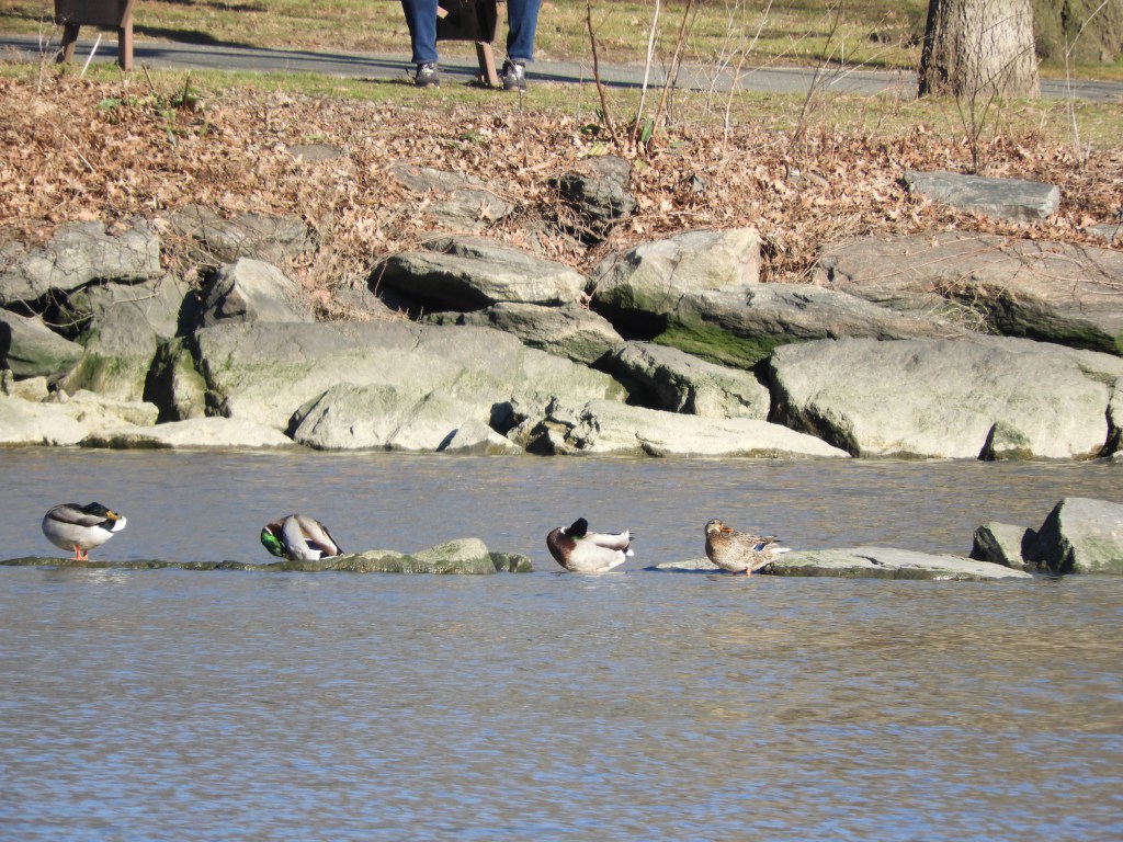 Notes: In the first week of February, the most active birds observed were Northern Cardinals, woodpeckers, Blue Jays, Dark-eyed Juncos, Carolina Wrens, Mallards, gulls, and Red-tailed Hawks. The Red-tailed Hawks were often observed in hunting parties of 2 to 4 hawks.