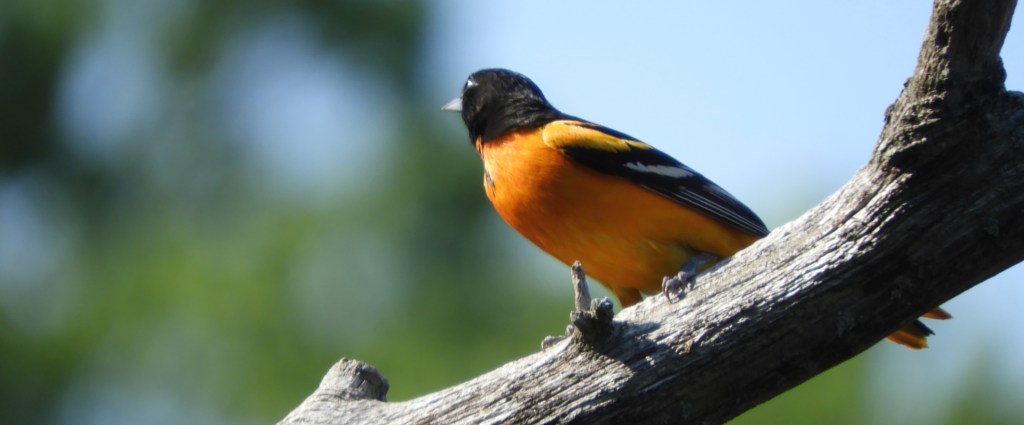 Typically, June begins the summer season at the Salt Marsh with increased sightings of Great Egrets, Ospreys, Great Blue Herons, Black-crowned Night Herons, and other members of the heron family. Baby and juvenile birds will be learning the ways of their parents. On warm days, look for birds bathing in the natural springs. Cedar Waxwings may be around to eat ripening berries. The Baltimore Orioles continue their summer residency.
