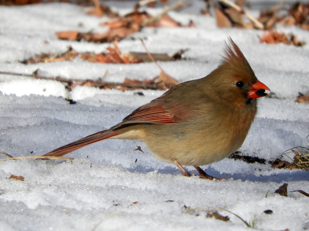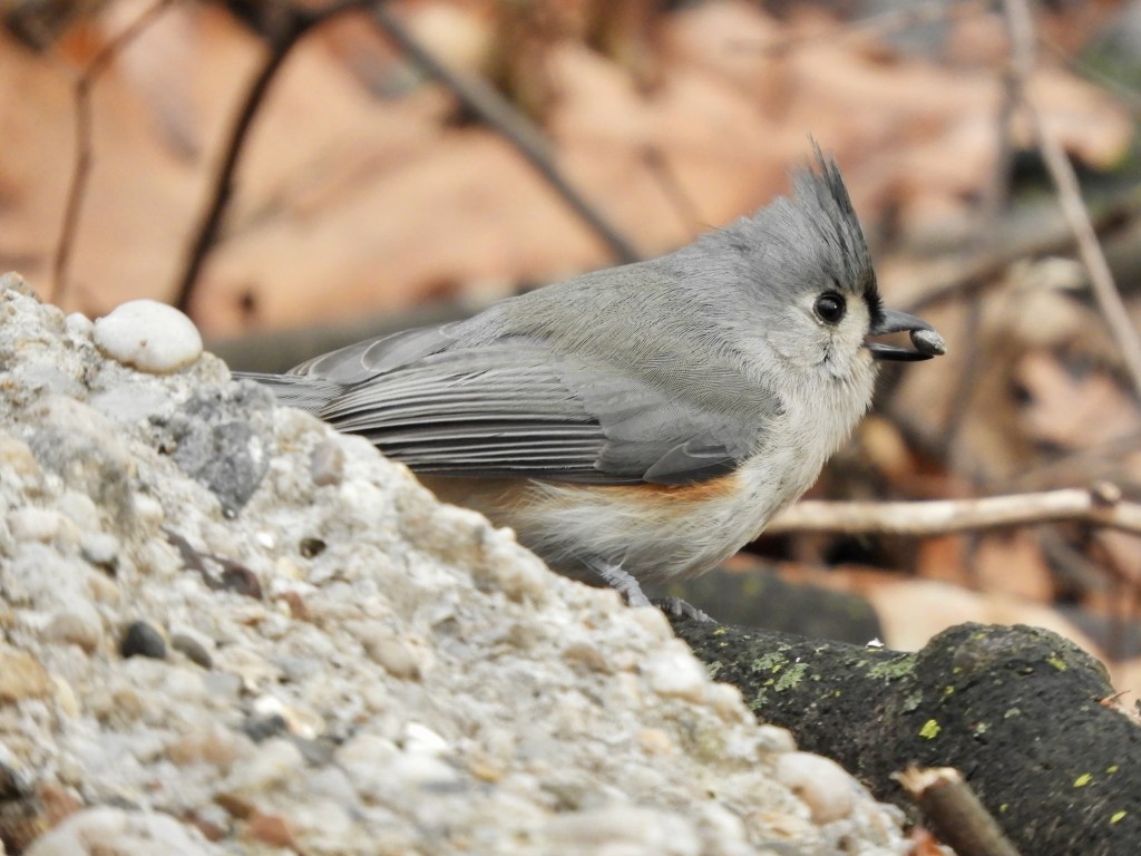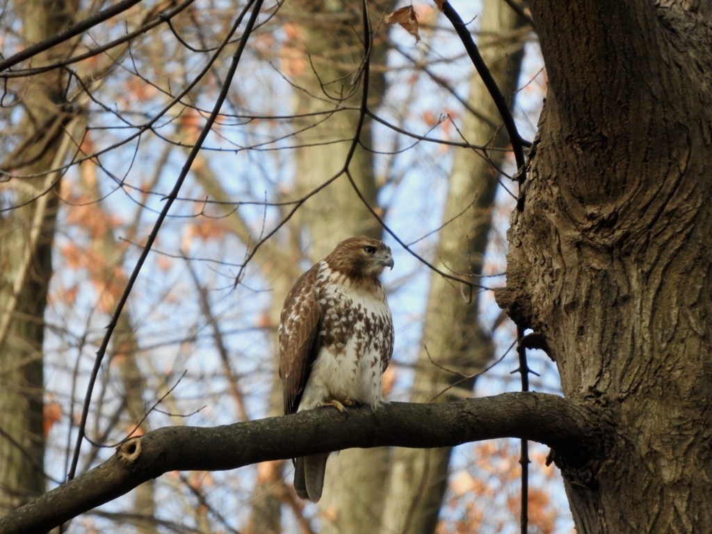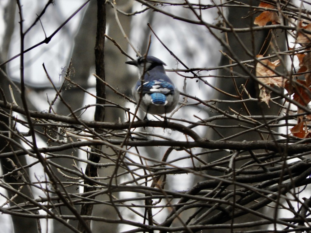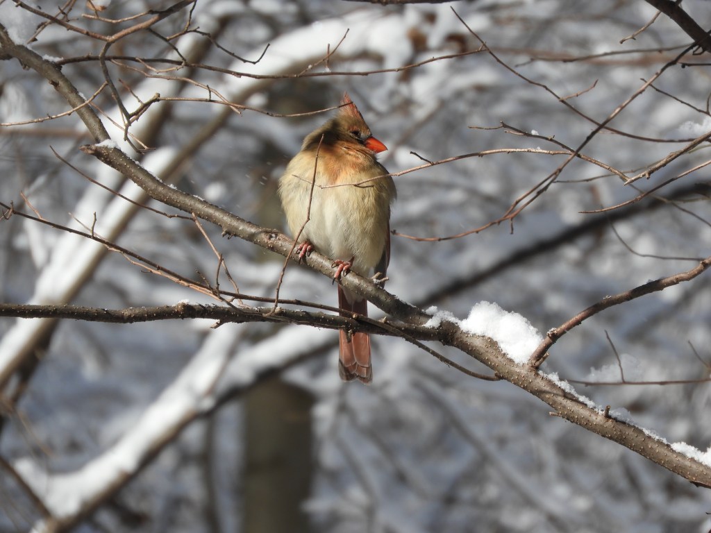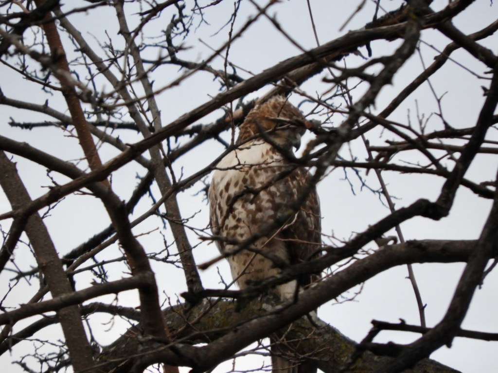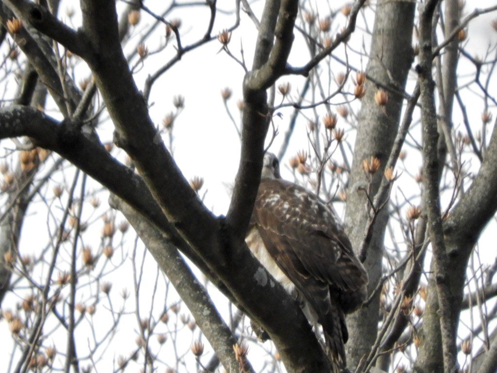 Note the increased presence of winter birds such as the Tufted Titmouse. They were largely absent during the 2023-2024 winter season and have returned for 2024-2025. Northern Cardinals and Blue Jays brighten the winter landscape. Barren branches allow good views of hawks such as the continuing Red-tailed Hawk.
