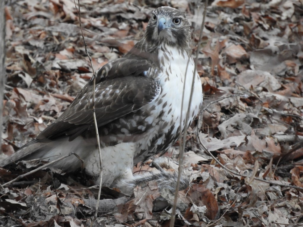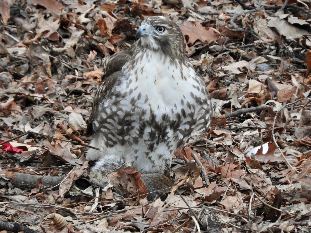 Red-tailed Hawk with prey, an Eastern Squirrel. January 14, 2025
