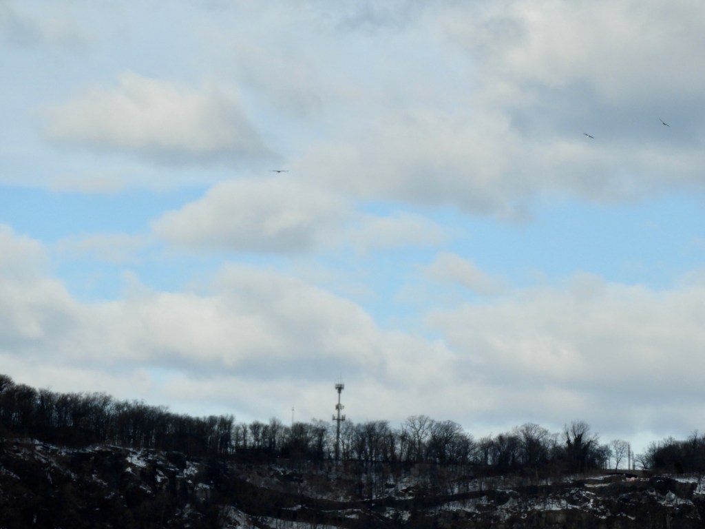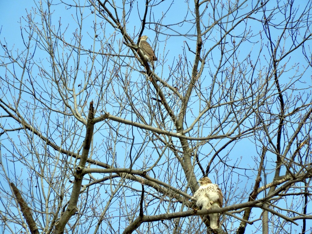 The month is good for viewing Bald Eagles, especially along any ice floes in the Hudson River. Hawks are active. This month, a Red-shouldered Hawk is present in addition to Red-tailed Hawks. At the Salt Marsh, look for a variety of waterfowl including mergansers.
