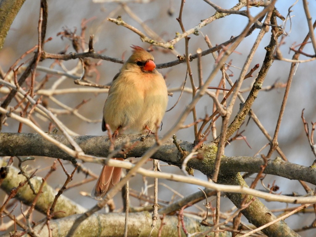 Northern Cardinals begin singing their song of spring.